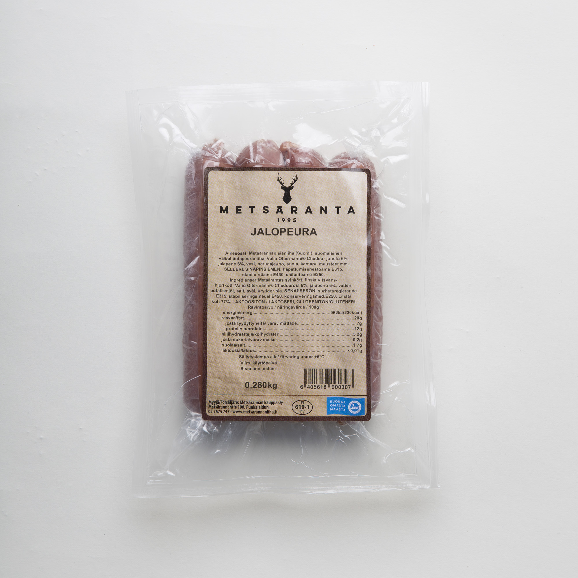 Ainesosat: Metsärannan sianliha (Suomi), suomalainen valkohäntäpeuranliha, Valio Oltermanni Cheddar-juusto 6 %, jalapeno 6 %, vesi, perunajauho, suola, kamara, mausteet mm. SELLERI, SINAPINSIEMEN, hapettumisenestoaine E315, stabilointiaine E450, säilöntäaine E250.