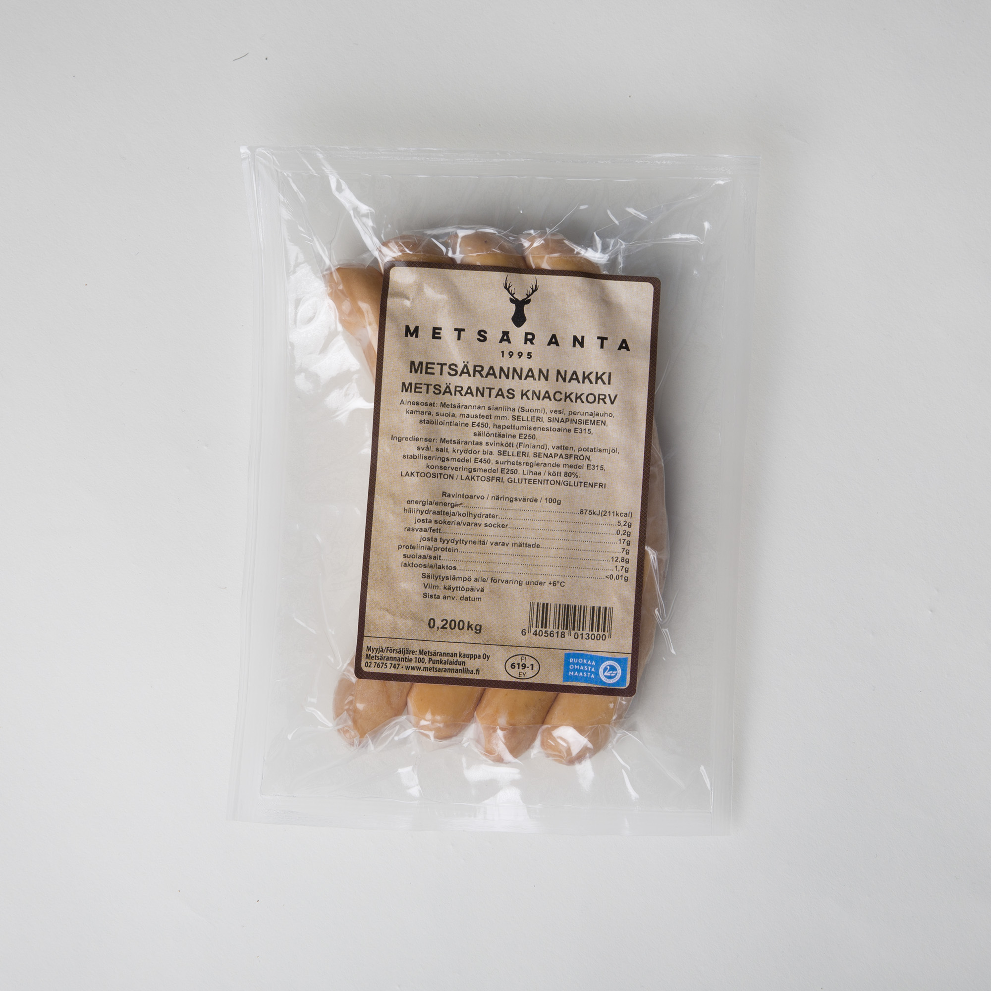Ainesosat: Metsärannan sianliha (Suomi), vesi, perunajauho, kamara, suola, mausteet mm. SELLERI, SINAPINSIEMEN, stabilointiaine E452, hapettumisenestoaine E315/E316, säilöntäaine E250.